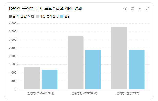 | 2. 중위험형 | 20만 원 | 로보어드바이저, ETF | 자녀교육, 창업 등 중기 자금 |